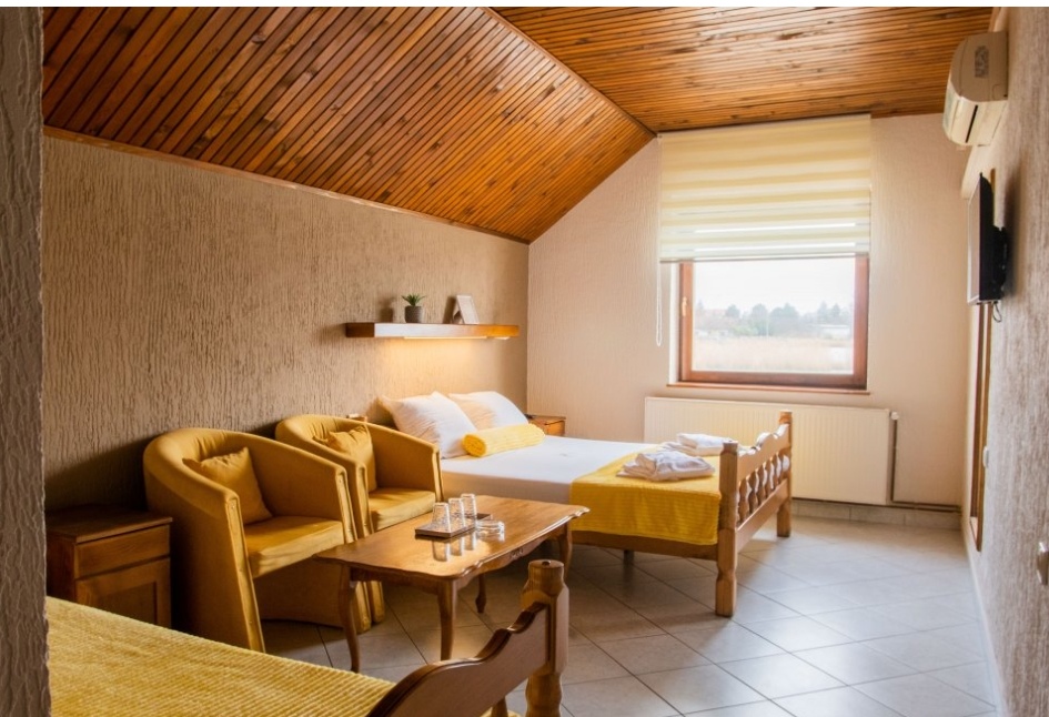 A panzió egy új építésű családi házban működik, melyben 10 szoba található, melyek mindegyikéhez külön fürdőszoba tartozik. Az épületben van továbbá reggeliző étterem, recepció, őrzött parkoló és wellness részleg is. A medence, a termálvizes medence, a szauna és jacuzzi mind-mind elérhetők vendégeink számára. Modern szobáink technikailag jól felszereltek, így biztosítva a tökéletes nyaralást minden vendég számára. A szobákban légkondicionáló, televízió kábel csatornákkal és vezeték nélküli internet is található.